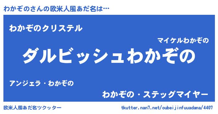 | ファンタジー風あだ名 | 『ワカディッシュ』『カークワカラー』 |