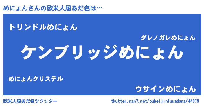 | 意味不明あだ名 | 『自称めにょん』『ヨモギ科めにょん属』 |