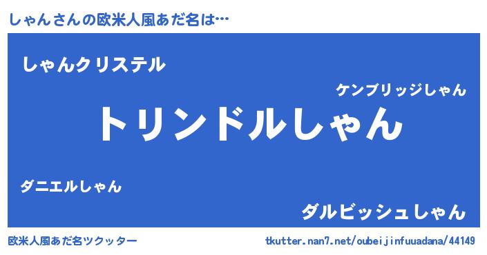 | 男性向けラノベタイトル風あだ名 | 『転生したらしゃんだった件』 |