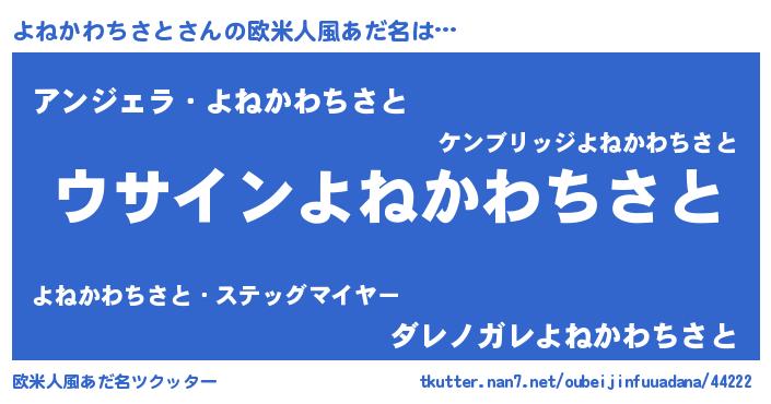 | 女子向けラノベタイトル風あだ名 | 『よねかわちさとは平凡を望む』 |