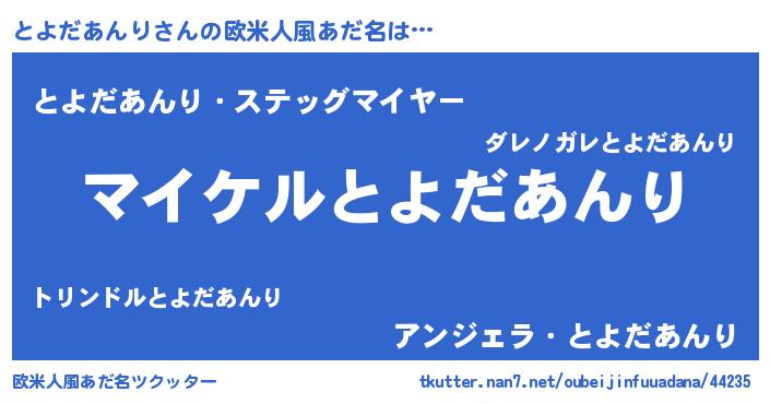| 男性向けラノベタイトル風あだ名 | 『トヨダアンリアートオンライン』 |