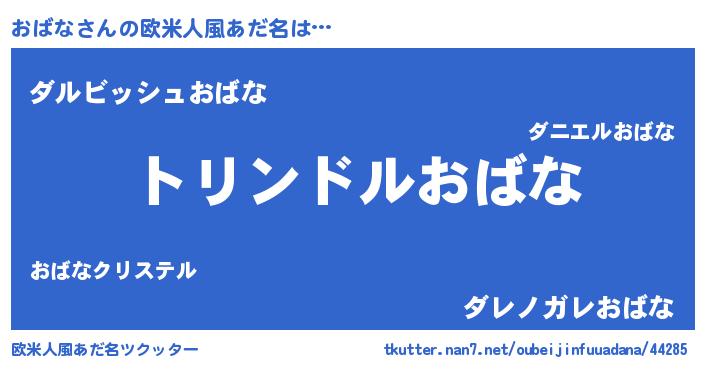 | 男性向けラノベタイトル風あだ名 | 『オバナスレイヤー』『魔弾の王とおばな』 |