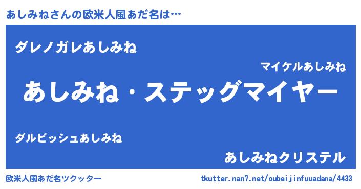 | 意味不明あだ名 | 『住所不定無職あしみね(6歳)』 |