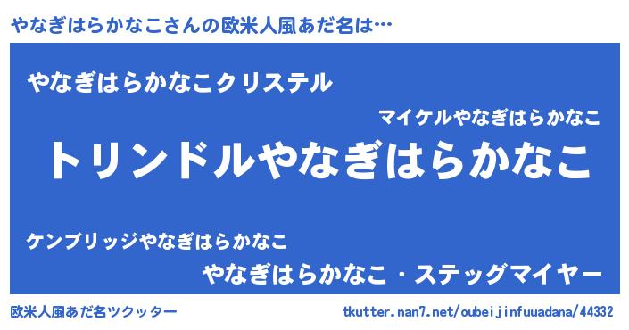 | 男性向けラノベタイトル風あだ名 | 『やなぎはらかなこ~年齢イコール彼女いない歴の魔法使い~』 |