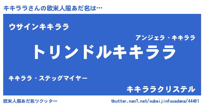 | 男性向けラノベタイトル風あだ名 | 『キキララ~年齢イコール彼女いない歴の魔法使い~』 |