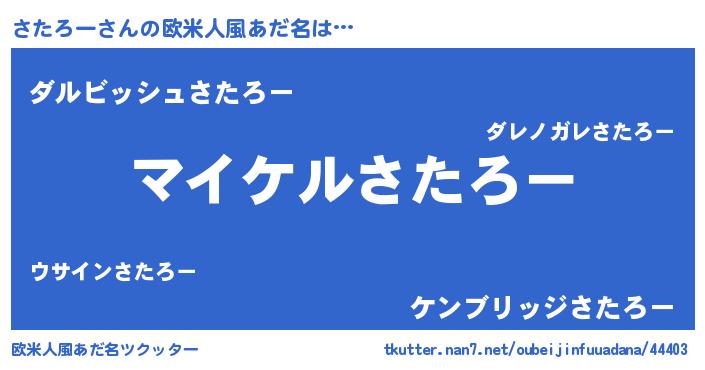 | 男性向けラノベタイトル風あだ名 | 『さたろーの憂鬱』 |