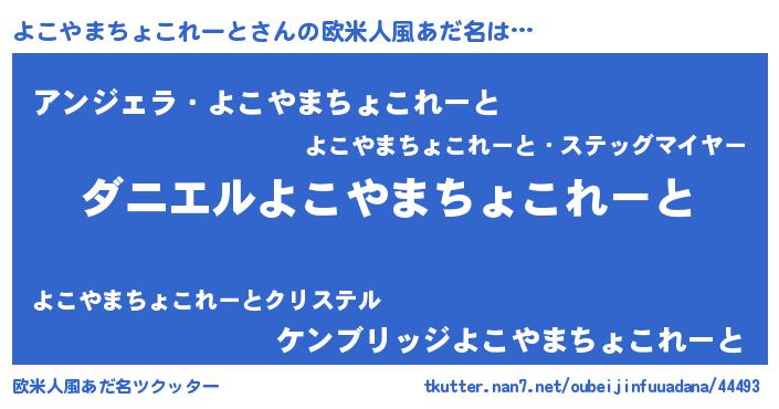 | 男性向けラノベタイトル風あだ名 | 『おまえをオタクにしてやるから、俺をよこやまちょこれーとにしてくれ! 』 |