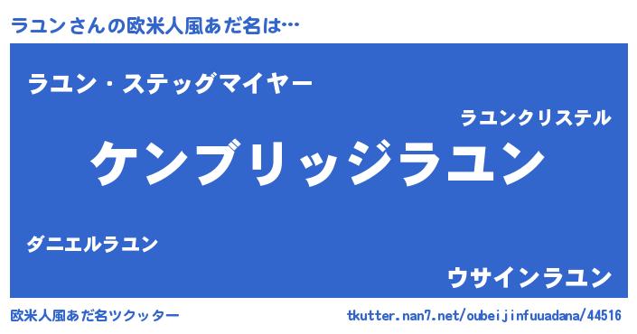 | 男性向けラノベタイトル風あだ名 | 『魔法科高校のラユン』 |
