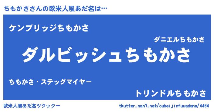 | 意味不明あだ名 | 『永久保存ちもかさ』『自称ちもかさ』 |