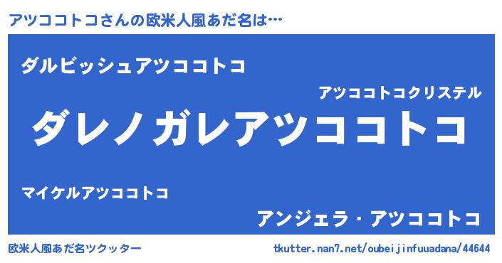 | 意味不明あだ名 | 『住所不定無職アツココトコ(85歳)』 |