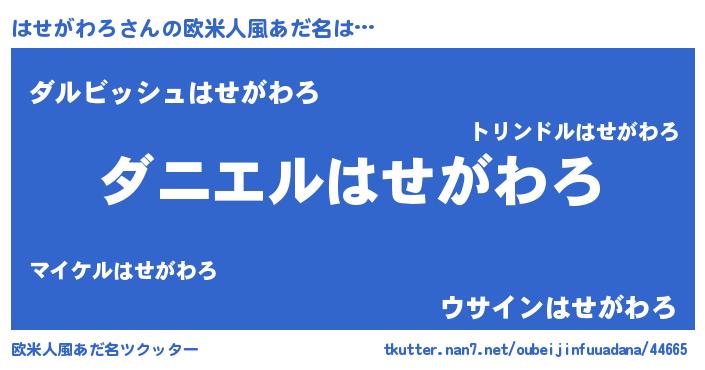 | 男性向けラノベタイトル風あだ名 | 『おまえをオタクにしてやるから、俺をはせがわろにしてくれ! 』 |