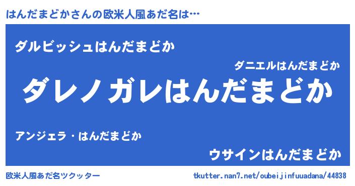 | 男性向けラノベタイトル風あだ名 | 『この素晴らしい世界にはんだまどかを!』 |