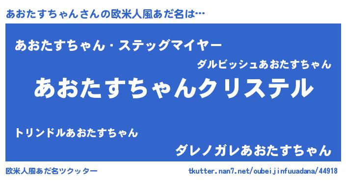 | 男性向けラノベタイトル風あだ名 | 『やはりあおたすちゃんの青春ラブコメはまちがっている 』 |