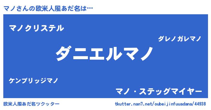 | 男性向けラノベタイトル風あだ名 | 『おまえをオタクにしてやるから、俺をマノにしてくれ! 』 |
