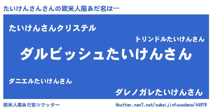 | 男性向けラノベタイトル風あだ名 | 『たいけんさんという概念が存在しない退屈な世界 』 |