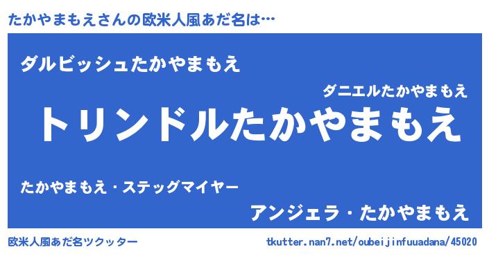 | ヘコむあだ名 | 『たかやまもえ(笑)』『たかにゅー』 |