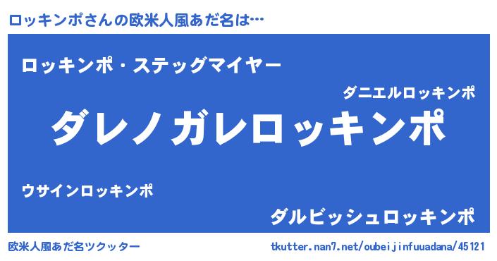 | 男性向けラノベタイトル風あだ名 | 『魔弾の王とロッキンポ』 |