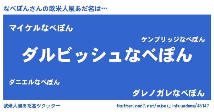 | 男性向けラノベタイトル風あだ名 | 『なべぽんという概念が存在しない退屈な世界 』 |