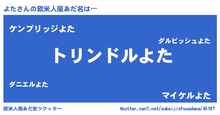 | 可愛いあだ名 | 『よたぷりん』『よたうちぇる』 |