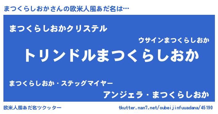 | 男性向けラノベタイトル風あだ名 | 『マツクラシオカスレイヤー』 |