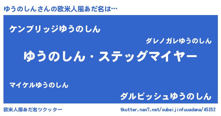 | 男性向けラノベタイトル風あだ名 | 『うちのゆうのしんが世界を掌握している!』 |