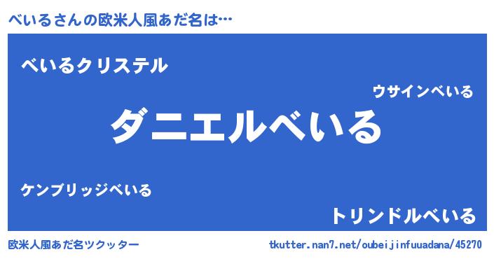 | 意味不明あだ名 | 『眠気覚ましガムべいる味』『自称べいる』 |
