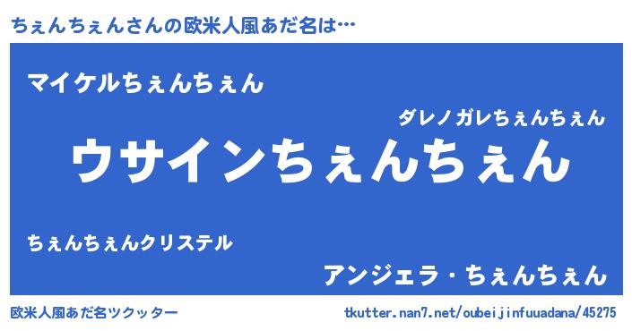 | 男性向けラノベタイトル風あだ名 | 『ちぇんちぇんの嫁は女の子じゃないと思った?』 |