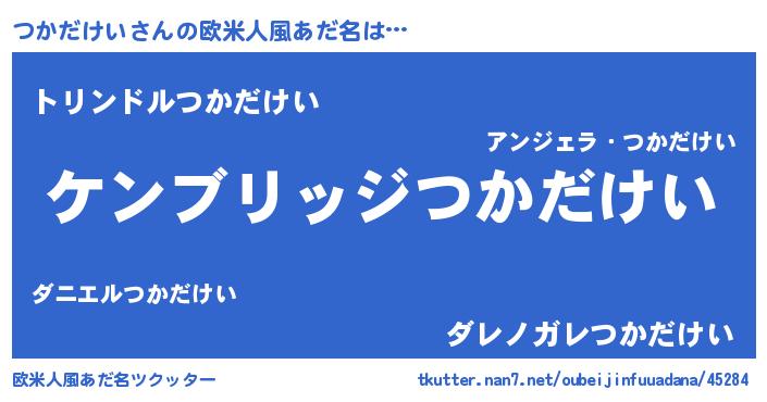 | 男性向けラノベタイトル風あだ名 | 『Re:つかだけいから始める異世界生活』 |