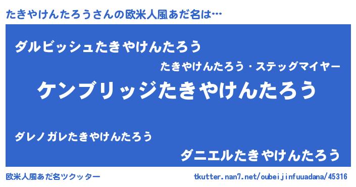 | 意味不明あだ名 | 『自称たきやけんたろう』 |