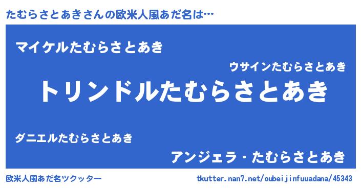 | 男性向けラノベタイトル風あだ名 | 『転生したらたむらさとあきだった件』 |