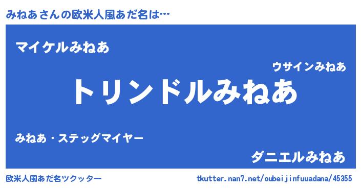 | 自動車の名前っぽいあだ名 | 『ミールスネイス』『ミネティマ』 |