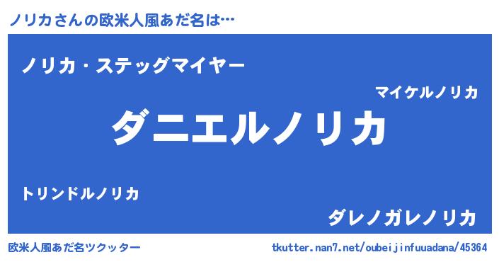 | 女子向けラノベタイトル風あだ名 | 『ノリカ恋絵巻』『ノリカの玉の輿計画!』 |