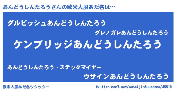 | 女子向けラノベタイトル風あだ名 | 『あんどうしんたろうアンティーク』 |