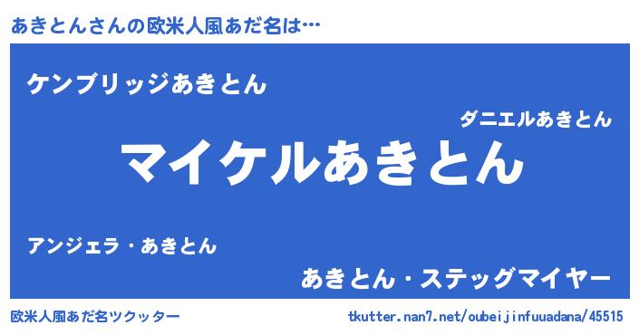 | 男性向けラノベタイトル風あだ名 | 『アキトンアートオンライン』 |
