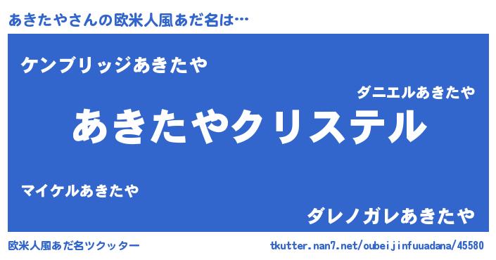 | ファンタジー風あだ名 | 『エターナルアキタヤー』『ゼアキトゥ』 |
