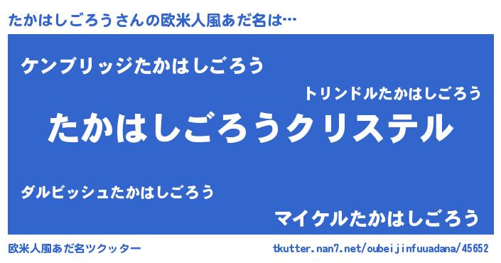| 男性向けラノベタイトル風あだ名 | 『やはりたかはしごろうの青春ラブコメはまちがっている 』 |