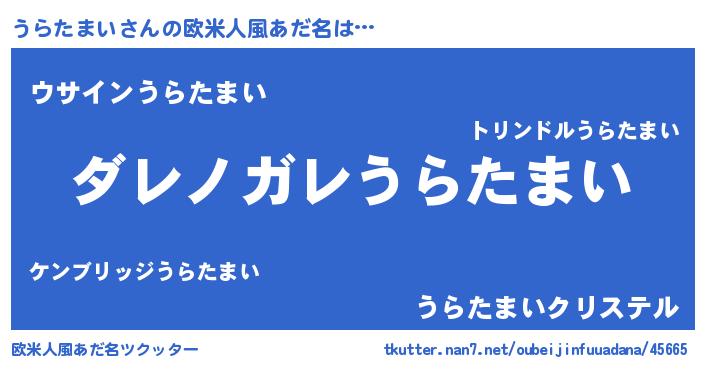 | 男性向けラノベタイトル風あだ名 | 『魔弾の王とうらたまい』 |