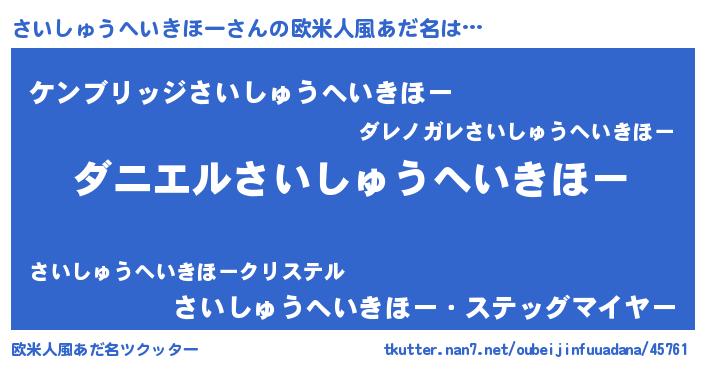 | ヒーロー風カッコイイあだ名 | 『友情の使者さいしゅうへいきほー』 |