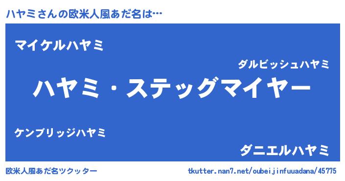 | ヒーロー風カッコイイあだ名 | 『スーパーハヤミ』『慈愛の使者ハヤミ』 |