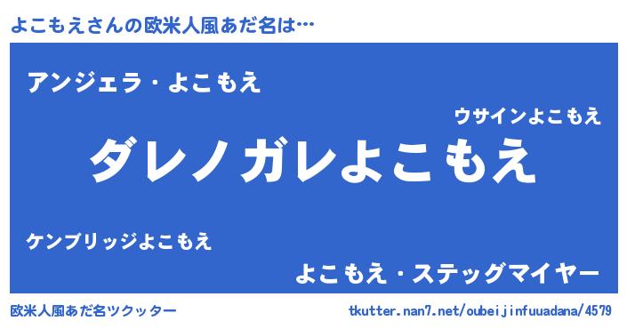 | 男性向けラノベタイトル風あだ名 | 『この素晴らしい世界によこもえを!』 |
