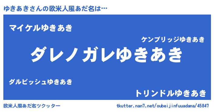 | 男性向けラノベタイトル風あだ名 | 『この素晴らしい世界にゆきあきを!』 |