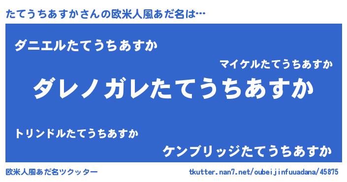 | ヘコむあだ名 | 『たてふぇ~』『たてうちあすか(震え声)』 |