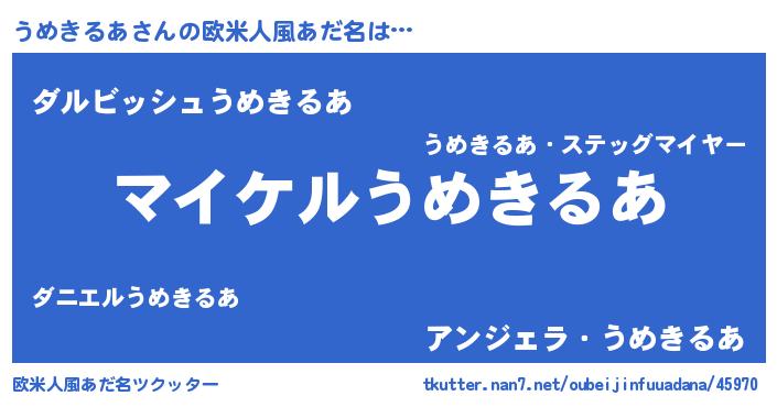 | 胡散臭い通販商品みたいなあだ名 | 『必ず成功するブレスレット…その名も「うめきるあ」』 |