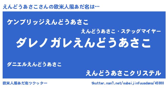| 意味不明あだ名 | 『住所不定無職えんどうあさこ(8歳)』 |