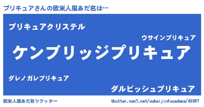 | 男性向けラノベタイトル風あだ名 | 『Re:プリキュアから始める異世界生活』 |