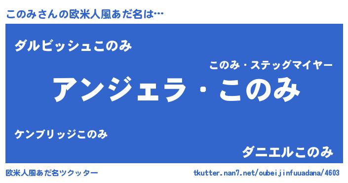 男性向けラノベタイトル風あだ名 | 『はたらくこのみさま!』『緋弾のコノミ』 |