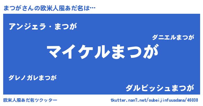 | 男性向けラノベタイトル風あだ名 | 『まつがの憂鬱』『魔弾の王とまつが』 |