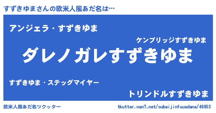 | 男性向けラノベタイトル風あだ名 | 『この素晴らしい世界にすずきゆまを!』 |