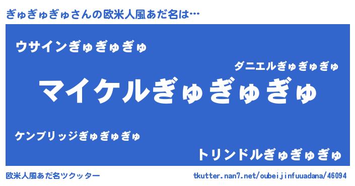 | 男性向けラノベタイトル風あだ名 | 『ぎゅぎゅぎゅの憂鬱』 |