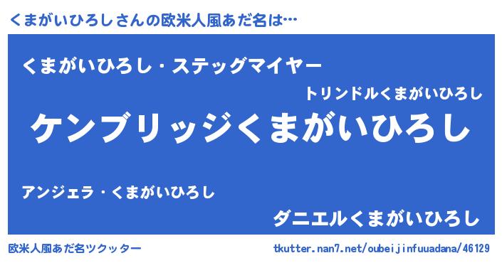 | 女子向けラノベタイトル風あだ名 | 『くまがいひろしなんてお断りですっ。』 |